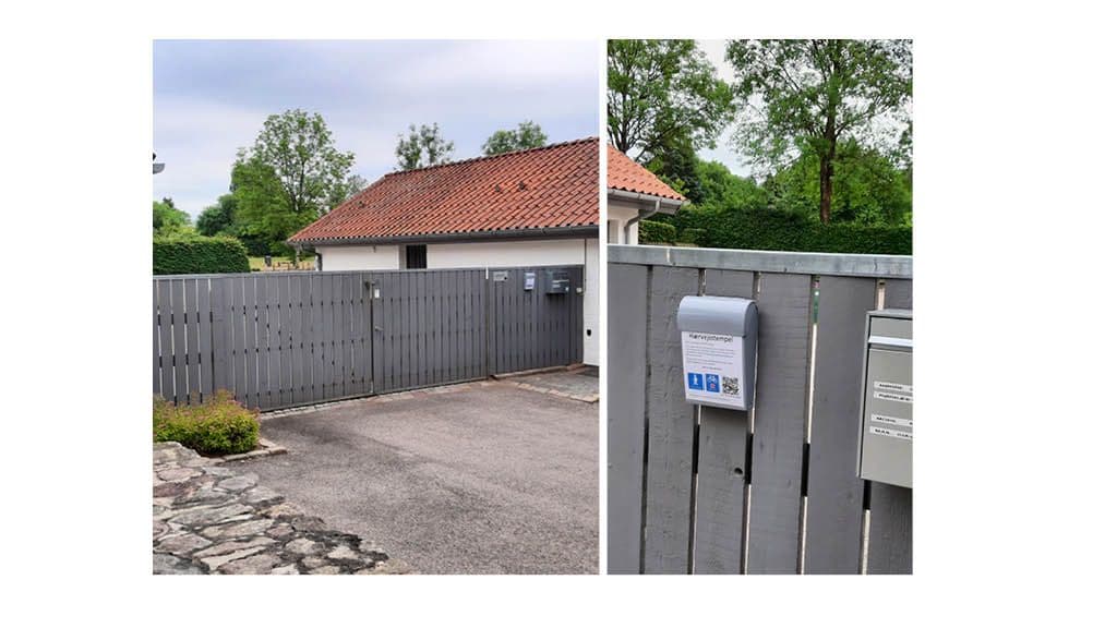 Finden Sie den Stempel: Der Stempel befindet sich an der Kirche Nørre Snede, in einer Box am Zaun beim Friedhofsbüro. Dies ist gleich rechts vom Toilettengebäude.